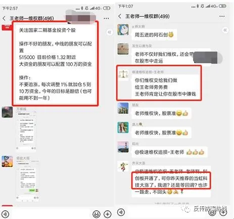 雖未進(jìn)行核實(shí),但代維機(jī)構(gòu)本身大概率難以獲得投資顧問資質(zhì),且這種在微信群里薦股信息的行為,與他們所打擊的“黑平臺(tái)”喊單行為并無二致。已有過上當(dāng)受騙經(jīng)歷的投資者,自然是更為容易捕獲的“收割對(duì)象”。 券商中國(guó)記者發(fā)現(xiàn),目前已有多名投資者在百度貼吧、百度知道、股吧等渠道表示遭遇以代維為名義的詐騙,“打著維權(quán)的名義行詐騙的事情,希望大家擦亮雙眼”。