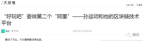 另外,鷹鑒通過網(wǎng)上查閱到一篇標(biāo)題為《“好玩吧”要做第二個(gè)“阿里”——孫運(yùn)動(dòng)和他的區(qū)塊鏈技術(shù)平臺(tái)》的文章。該文章筆者稱,好玩吧”要依托區(qū)塊鏈技術(shù)和社群經(jīng)濟(jì)做第二個(gè)“阿里”。