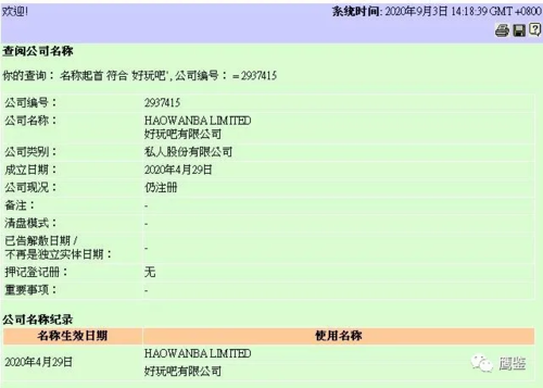 “好玩吧”APP的投資者通過上述方法能獲得“鉆石”獎(jiǎng)勵(lì)外,還可以通過“拉人頭”的方式獲得“鉆石”提成。下線擁有“礦機(jī)”級別越高,上線獲得的提成也就越多。同時(shí)還能獲得下屬團(tuán)隊(duì)游戲充值利潤2%的提成。 同時(shí),投資者還可以通過發(fā)展下線進(jìn)階為星級達(dá)人。星級達(dá)人由低到高共分別是五個(gè)級別。成為星級達(dá)人后可以獲得“礦機(jī)”和全球交易手續(xù)費(fèi)分紅獎(jiǎng)勵(lì)。 很明顯,“好玩吧”APP的運(yùn)營模式,完全符合《禁止傳銷條例》規(guī)定的傳銷行為。 那么,“好玩吧”APP是哪家公司旗下的產(chǎn)品呢?操盤手又是誰呢?據(jù)“好玩吧”APP多次發(fā)布的公告顯示,“好玩吧”APP屬于香港好玩吧有限公司旗下的應(yīng)用軟件。鷹鑒通過香港查冊中心網(wǎng)站上查詢到,香港好玩吧有限公司實(shí)際名稱是好玩吧有限公司,注冊時(shí)間是2020年4月29日。