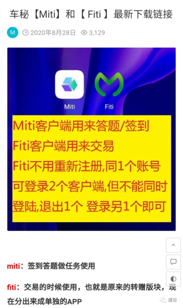 值得注意的是,相關(guān)部門雖然勒令“車秘”APP平臺停止傳銷活動,立即關(guān)閉推薦會員獎勵積分、會員轉(zhuǎn)撥積分相關(guān)功能。但“車秘APP”平臺為了逃避監(jiān)管,不僅將“車秘”APP更名為“Miti”,將原交易功能板塊遷移到“Fiti”APP上。