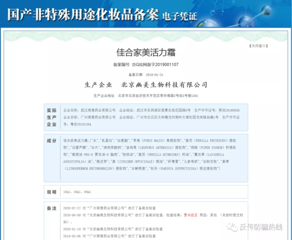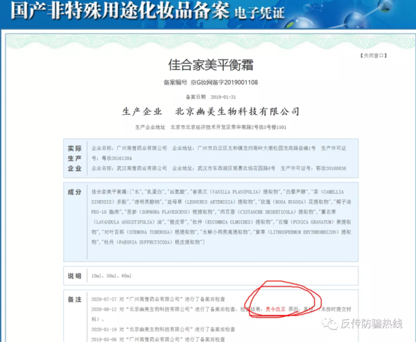 如此神藥,我們在其包裝盒上卻只看到妝網(wǎng)備字,也就是說,他們只是一款化妝品。根據(jù)我國廣告法的規(guī)定,其使用大量醫(yī)藥術(shù)語,宣傳或暗示具有治療效果,已經(jīng)涉嫌違法廣告宣傳欺騙消費者。2020年6月,相關(guān)部門對幽美生物進行備案后檢查,檢查結(jié)果為責令改正。