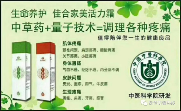 某網(wǎng)友跟李旭反傳銷團隊反饋,佳合家美“萊曼仙姿”活力霜、平衡霜宣稱針對腰間盤突出、腎結(jié)石、骨刺骨膜炎、修復心間隔膜、甲狀腺炎、甲狀腺結(jié)節(jié)腫大、盆腔炎、面癱、小腿萎縮等有“神奇功效”。此外,他們還聲稱這些產(chǎn)品是量子頂級科技+中草藥,中醫(yī)藥結(jié)合,療效快,治標又治本。