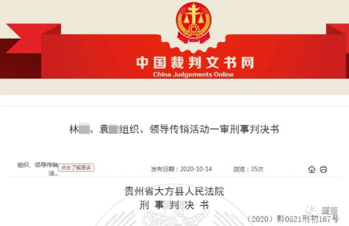2020年2月下旬,貴州省畢節(jié)市大方縣公安局破獲一起“中國人際網(wǎng)國網(wǎng)”傳銷案,抓獲多名骨干人員。9月29日,大方縣人民法院對該案進(jìn)行了一審宣判,林某、袁某、向某懷三名被告人分別被判處有期徒刑,并處罰金。