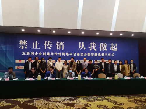 會議期間,拼多多、阿里巴巴、騰訊、京東、百度、美團、蘇寧、小紅書、聚美、字節(jié)跳動、唯品會、云集、格家網絡、快手等互聯網公司簽署《電商企業(yè)創(chuàng)建無傳銷網絡平臺承諾書》。