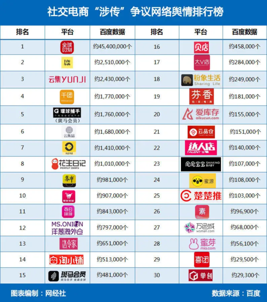 《社交電商“涉?zhèn)鳌睜幾h網絡輿情排行榜》出爐未來發(fā)展“迷霧重重”
