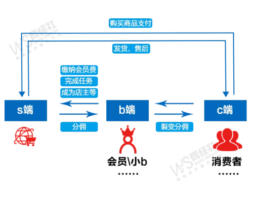 其中,會員分銷類社交電商“涉?zhèn)鳌眴栴}較為凸顯,該類平臺起始于微商,微商紅利消退后,大量微商從業(yè)者開始涌入社交電商行業(yè)。具體來看,以社交為發(fā)力點,小b負責平臺獲客與用戶運營的職責,平臺分配小b部分利潤來持續(xù)激發(fā)其獲客的動力。在這過程中,平臺組建商品供應、物流、售后等零售服務能力,末端通過會員用戶/小b分銷等進行引流以及銷售。