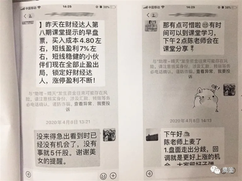 今年5月初,美蘭分局刑警大隊接到一受害人報案,稱其被網(wǎng)絡(luò)詐騙300余萬元。該受害人于今年3月底接到自稱“東方財富”講堂工作人員的電話稱可提供專業(yè)老師帶學(xué)員炒股服務(wù),他信以為真,被拉進入了一個叫“財經(jīng)達人課堂”的微信群。