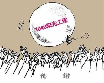 據(jù)落網(wǎng)的傳銷組織成員交代,所謂“1040陽(yáng)光工程”,就是傳銷團(tuán)伙對(duì)組織成員的承諾,只要他們按照組織介紹的方式進(jìn)行‘資本運(yùn)作’,那么在最后離開(kāi)的時(shí)候,就能夠拿到1040萬(wàn)元的收益。