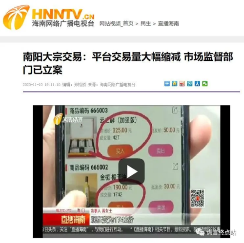海南電視臺(tái)再度曝光南陽(yáng)大宗:平臺(tái)交易量大幅縮減 市場(chǎng)監(jiān)督部門(mén)已立案