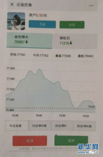 2019年5月,兩江新區(qū)公安分局天宮殿派出所接到群眾陳某報警稱,他在一個網(wǎng)上商城平臺上投資,卻被騙了3000多元。據(jù)陳某的描述,該“商城”中設(shè)置有“金絲楠木、綠松石、天麻、藏紅花”等商品的交易市場,可以看到每一種商品都有類似“股票”的實時價格。參與者可以進行買漲買跌的操作。他第一次贏了一點錢,隨后便輸了個精光?;仡^一想感覺不對勁,于是選擇了報警。