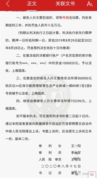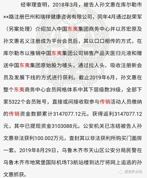 【東夷國際】西北團隊長孫某惠被判有期徒刑三年!