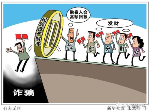 “民族資產(chǎn)解凍”是一種集返利、傳銷、詐騙為一體的新型、混合型詐騙犯罪,極具誘惑性和欺騙性,受害者往往經(jīng)不住誘惑以繳納啟動資金、會員報名費(fèi)、投資入股的方式去“解凍”所謂的“民族資產(chǎn)”,以求獲得返利而被詐騙。