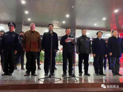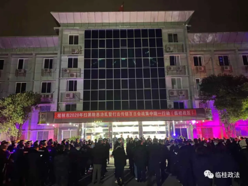 2020年12月3日上午,桂林市在各縣區(qū)同步開展全市打擊傳銷暨掃黑除惡集中統(tǒng)一行動。副市長、市公安局局長朱永輝,副市長鐘洪以及臨桂區(qū)打擊傳銷工作領(lǐng)導(dǎo)小組相關(guān)成員單位的主要領(lǐng)導(dǎo)共同參加了行動前誓師大會。