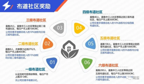 直接發(fā)展的下線人數(shù)達(dá)到200人,其中3人的社區(qū)等級(jí)并達(dá)到五級(jí)布道社區(qū),即可成為“六級(jí)布道社區(qū)”,“六級(jí)布道社區(qū)”的會(huì)員每天最多可以產(chǎn)出3000個(gè)OBC幣,同時(shí)還能獲得交易手續(xù)費(fèi)總收入的5%加權(quán)分紅。