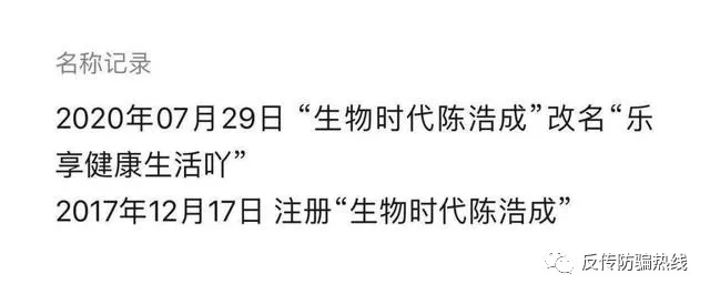 該公司實控人及大股東同樣名為“陳克成”。更為蹊蹺的是,遼寧生物時代此前發(fā)布的多篇宣傳稿顯示,其董事長也名為“陳浩成”。并且其申請商標(biāo)中包括“陳浩成生物時代”、“陳浩成康潔生物”等,中國網(wǎng)財經(jīng)記者通過商標(biāo)所展示頭像比對,發(fā)現(xiàn)此“陳浩成”與沈陽康潔的董事長“陳浩成”長相極為相似,二者的商標(biāo)設(shè)計也非常接近,該公司還曾申請過“陳浩成康潔生物”的商標(biāo)。 今年11月19日,該公司仍在申請“陳浩成生物時代”的商標(biāo)。 綜上,遼寧生物時代是否就是沈陽康潔公司的另一個馬甲?中國網(wǎng)財經(jīng)向遼寧生物時代求證,截至發(fā)稿并未獲得回復(fù)。 新產(chǎn)品或涉虛假宣傳 中國網(wǎng)財經(jīng)還發(fā)現(xiàn),換了馬甲的沈陽康潔或許并未停止售賣虛假宣傳的保健品。 一個名為“樂享健康生活吖”的微信公眾號于2020年5月發(fā)布一款售價為398元的鴕鳥油護(hù)膚霜產(chǎn)品,根據(jù)該發(fā)布內(nèi)容,此款鴕鳥油依據(jù)生物療法,可治“急性胃痛”、“便秘便阻”、“感冒”、“痛經(jīng)”等15種疾 6其中所謂的生物療法,正是陳浩成聲稱其所創(chuàng)造的非藥物療法。 該公眾號原名為“生物時代陳浩成”,曾多次發(fā)布沈陽康潔董事長陳浩成相關(guān)內(nèi)容。但就在沈陽康潔注銷前兩天,即7月29日,該公眾號改名為“樂享健康生活吖”。