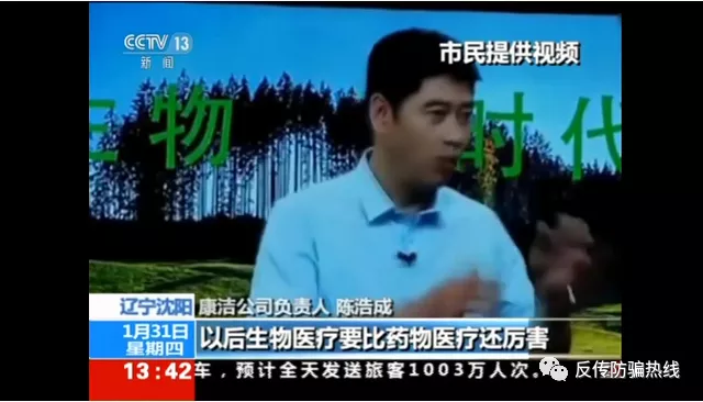 沈陽康潔的保健品商標(biāo)均為“陳浩成生物時代”,在宣傳中,多圍繞董事長陳浩成的個人形象展開,并且多次提到陳浩成提倡的生物療法能夠創(chuàng)造奇跡、引爆人類健康大提速,有大批老年人捧