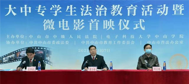 1月7日下午,中山市中級(jí)人民法院聯(lián)合電子科技大學(xué)中山學(xué)院舉辦大中專學(xué)生法治教育活動(dòng)暨微電影《爸,給您報(bào)個(gè)平安》首映儀式。