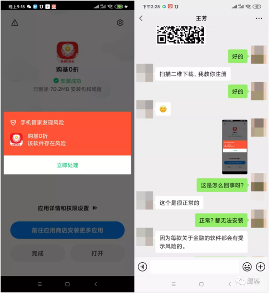 另外,還值得注意的是,小編在下載安裝“購基0折”APP的時(shí)候,手機(jī)管家直接提示該軟件存在風(fēng)險(xiǎn)。