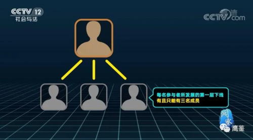 這類案件通常涉案人數(shù)極多,在這起案件中警方共抓獲了7名核心的犯罪嫌疑人,其中包括幕后首腦林某華以及兩名軟件客服,剩下的則是像晏某這樣,平常負責運營軟件的V9級會員。這一起案件中,兩名客服其實是林某華的親戚,主要負責審核注冊、資料上傳等事項。 那么,林某華他們是如何從一個幾個人的團伙,迅速擴散到全國這么大范圍的呢? 據(jù)警方介紹,首先這個軟件本身就唬住了不少人,很多人會想這都有軟件了,這肯定不會是什么草臺班子,其次這類傳銷活動的擴散都是靠人傳人,一個人推薦給另一個人,他們互相之間都有關(guān)聯(lián)性,至少是認識的關(guān)系。 實際就是利用的是熟人之間的互相信任,犯罪分子哪怕說到天花亂墜,都不如熟人之間的一次推心置腹,而且他們還有一個專門的運營模式叫“三三排列原則”。 “三三排列原則”即每名參與者所發(fā)展的第一層下線只能有三名成員,該參與者如果再發(fā)展新的成員,系統(tǒng)軟件會自動將新會員,匹配到下線不足三人的參與者傘下。