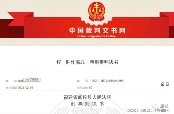 1月12日,閩侯縣人民法院依照相關(guān)法律的規(guī)定,以詐騙罪,判處程某勝有期徒刑3年3個(gè)月,并處罰金1萬(wàn)元。