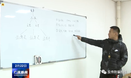 市公安局經(jīng)偵大隊民警韋捷:通過對現(xiàn)場查獲的“學(xué)習(xí)筆記”、“學(xué)習(xí)資料”的解讀,我們就發(fā)現(xiàn)在這些學(xué)習(xí)筆記筆錄當(dāng)中都是在教這些人如何發(fā)展下線、拉人頭,通過這種模式來擴(kuò)大他們的體系。