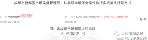 四川省成都市新都區(qū)人民法院行政裁定書((2020)川0114財(cái)保289號)和執(zhí)行裁定書((2020)川0114執(zhí)保924號)顯示,因涉嫌傳銷,成都市新都區(qū)市場監(jiān)督管理局向法院提出申請凍結(jié)被申請人林某名下中國建設(shè)銀行廈門杏林支行賬戶存款100萬元、中國工商銀行廈門翔安支行存款100萬元、中國農(nóng)業(yè)銀行廈門保稅港支行存款100萬元,共計(jì)300萬元,申請凍結(jié)期限為1年。經(jīng)中國經(jīng)濟(jì)網(wǎng)記者比對確認(rèn),行政裁定書中的林某為執(zhí)行裁定書中的當(dāng)事人林晨焱。法院依法裁定并執(zhí)行。