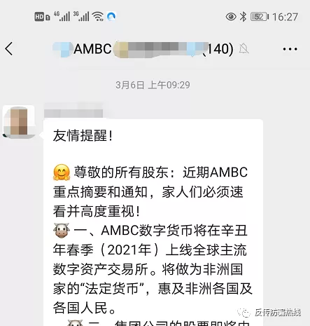 梨樹縣警方破獲“非洲礦業(yè)”網(wǎng)絡(luò)傳銷案后,有幾個(gè)月該傳銷組織消停了幾個(gè)月,隨后至今還是有很多宣傳群依然在對(duì)外宣傳“非洲礦業(yè)AMBC”虛擬貨幣。