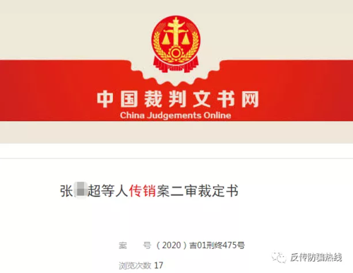 3月10日,李旭反傳銷團隊獲悉,長春市中級人民法院二審裁定一起傳銷案,該傳銷組織以銷售“一吃白”產(chǎn)品為名開展傳銷活動,9被被告人系該組織組織者、發(fā)起者,其行為已構(gòu)成組織、領(lǐng)導(dǎo)傳銷活動罪。