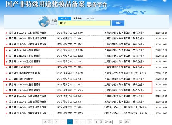 旗下Skin DNA能量源液系列產(chǎn)品為上海韻爾化妝品公司代工生產(chǎn)