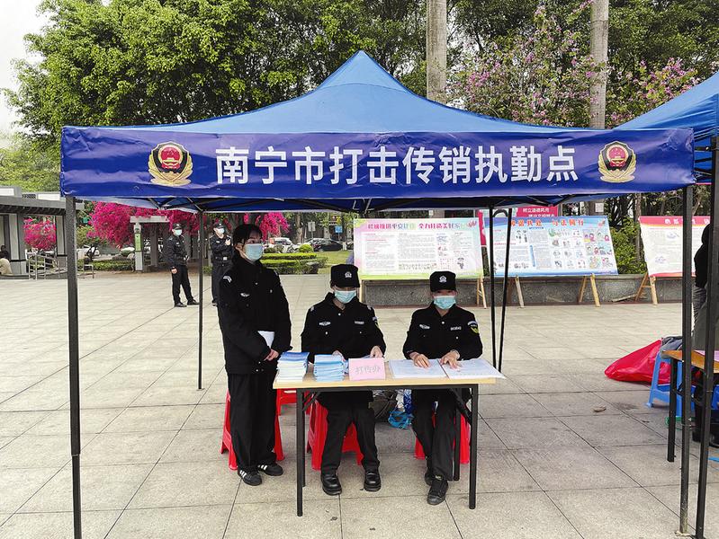 邕寧區(qū)設(shè)置打擊傳銷(xiāo)執(zhí)勤點(diǎn),防范和打擊傳銷(xiāo)活動(dòng)。