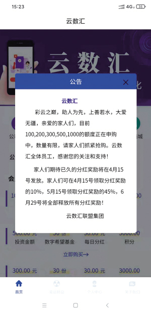▲“云數(shù)匯”App 何先生懷疑,該App涉嫌投資詐騙。為了深入了解該App,何先生向該女士要了App的下載方式?!斑@個App的下載做得非常隱蔽,通過網(wǎng)頁、應用商店都搜不到,只能通過對方提供的二維碼掃描下載?!焙蜗壬f。 何先生發(fā)現(xiàn),該App內(nèi)的“數(shù)字科技服務(wù)未來”研究報告,篡改了“畢馬威中國”的研究報告。其宣傳內(nèi)容中,提及“云數(shù)貿(mào)”科技創(chuàng)始人為張健,而“云數(shù)貿(mào)”早在2013年就被界定為傳銷組織,創(chuàng)始人張健被判13年有期徒刑。 App顯示今日首次分紅 “云數(shù)匯”App中“我的證書”一欄,發(fā)布了一份國家信息安全測評信息安全服務(wù)資質(zhì)證書,證書中盜用了云數(shù)匯數(shù)據(jù)技術(shù)(云南)有限公司名稱、注冊地址、統(tǒng)一社會信用代碼證等信息,且將云數(shù)匯數(shù)據(jù)技術(shù)(云南)有限公司描述為“云數(shù)貿(mào)”的重組公司,App中還放了偽造的、帶有云南電視臺臺標的新聞內(nèi)容。
