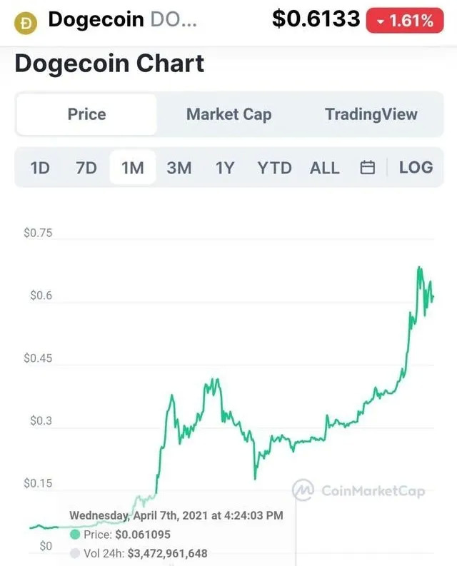 1個(gè)月內(nèi),狗狗幣暴漲10倍。