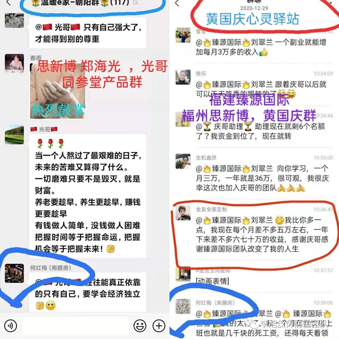 在之前曝光“臻源國(guó)際”的稿件中,我們有提到,他們除了虛假宣傳產(chǎn)品功效之外,之所以能夠快速的發(fā)展人員加盟代理,還有一個(gè)原因是因?yàn)樗麄兊哪J缴嫦觽麂N,“黃國(guó)慶”們以帶你賺大錢為由,然后誘騙廣大女性加入。