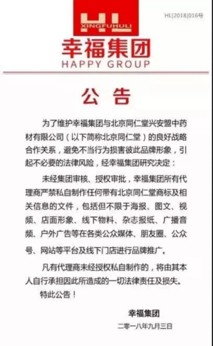 2018年8月5日,北京同仁堂一紙聲明將幸福狐貍送上了風(fēng)口浪尖。