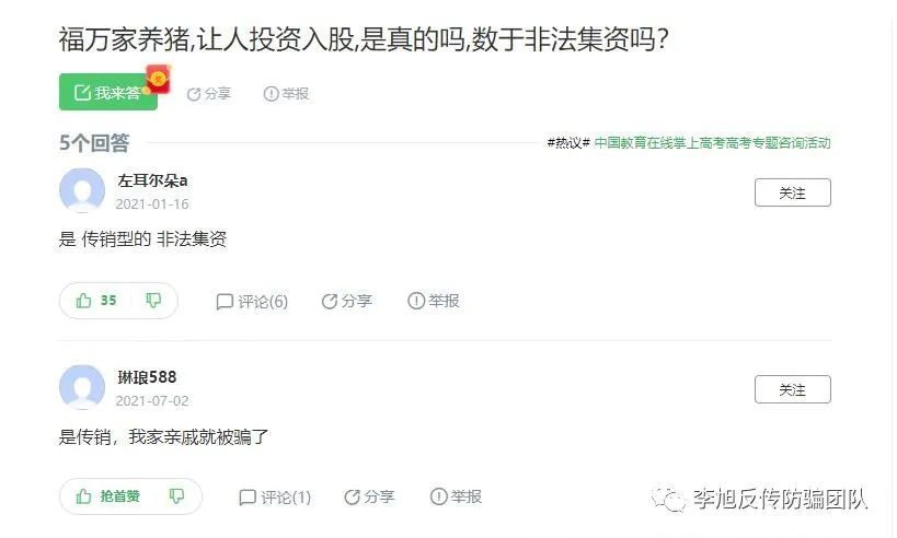 李旭反傳銷團(tuán)隊(duì)注意到,隨著福萬家項(xiàng)目的不斷推廣擴(kuò)大,目前網(wǎng)上也有網(wǎng)友對(duì)該項(xiàng)目提出質(zhì)疑。