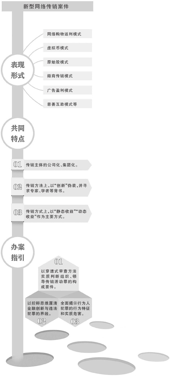 發(fā)表時間:2021-07-10 17:58作者:正義網(wǎng)來源:正義網(wǎng) 隨著互聯(lián)網(wǎng)技術的廣泛應用,傳銷組織借助互聯(lián)網(wǎng)犯罪手段也不斷翻新,他們打著“金融創(chuàng)新”的旗號,以“資本運作”“消費投資”等為名從事各種傳銷活動。這類案件往往涉案人數(shù)眾多、涉案數(shù)額特別巨大,取證難度大,導致司法實踐中在事實認定與數(shù)額認定方面存在諸多困難。本期“觀點·案例”聚焦最高檢第十批指導性案例中的葉經(jīng)生等組織、領導傳銷活動案(第41號),邀請法學專家與辦案檢察官就組織、領導傳銷活動罪案件的定性、如何識別新型傳銷活動等主要問題展開探討,敬請關注。 最高檢第十批指導性案例 葉經(jīng)生等組織、領導傳銷活動案(檢例第41號) 【案情簡介】 2011年6月,被告人葉經(jīng)生等人成立寶喬公司,先后開發(fā)“經(jīng)銷商管理系統(tǒng)網(wǎng)站”“金喬網(wǎng)商城網(wǎng)站”(下稱金喬網(wǎng))。以網(wǎng)絡為平臺,或通過招商會、論壇等形式,推廣金喬網(wǎng)的經(jīng)營模式。其模式主要是采取上線經(jīng)商會推薦并交納保證金發(fā)展下線經(jīng)銷商,以消費返利誘騙群眾參與金喬網(wǎng),保證金或購物消費額雙倍返利;在全國各地設區(qū)域代理,給予區(qū)域代理業(yè)務比例提成獎勵的方式發(fā)展會員。截至案發(fā),金喬網(wǎng)注冊會員3萬余人,其中注冊經(jīng)銷商會員1.8萬余人。在全國各地發(fā)展省、地區(qū)、縣三級區(qū)域代理300余家,涉案金額1.5億余元。 2013年3月11日,浙江省松陽縣檢察院以被告人葉經(jīng)生等人犯組織、領導傳銷活動罪向松陽縣法院提起公訴。2013年8月23日,浙江省松陽縣法院以組織、領導傳銷活動罪判處被告人葉經(jīng)生等人有期徒刑,并處罰金。兩被告人不服判決,提出上訴。麗水市中級法院經(jīng)審理后,認定原判事實清楚,證據(jù)確實、充分,定罪準確,量刑適當,審判程序合法,駁回上訴,維持原判。 ![]() 組織、領導傳銷活動罪的入罪法理