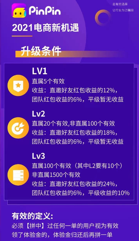 ▲圖片來源知乎 層層發(fā)展下線,級別越高利潤越高 L1 直推5名伙伴,每天81次紅包,我可獲得12%收益! L2 直推20名伙伴,每天81次紅包,我可獲得18%收益!團(tuán)隊人數(shù)100,間推獲得6%收益!月輕松最低3萬+ L3 直推100名伙伴,每天81次紅包,我可獲得24%收益!團(tuán)隊1500,間推可獲得6%收益!月輕松最低35萬+