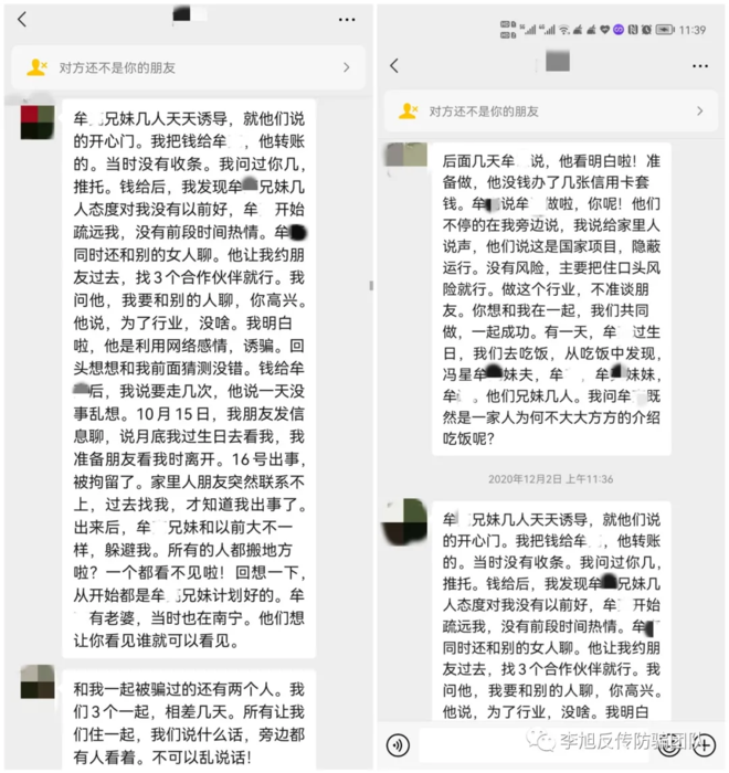 大家一定要睜大眼,小心網(wǎng)戀背后的溫柔一刀,不要相信傳銷組織“先有事業(yè)后有愛情”“ 共同打拼”“一起創(chuàng)業(yè)”的鬼話,遇到上面的情況,一定不要心軟,這就是傳銷設下的陷阱,一定要毅然決然地離開,往前走,別回頭!