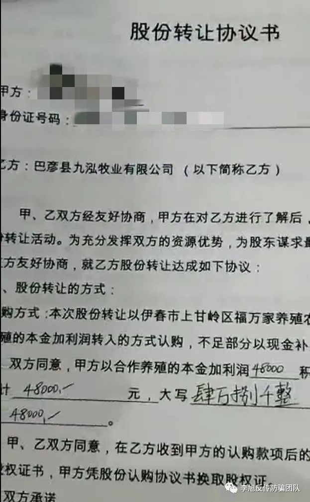合同內(nèi)容提到,認(rèn)購方式,本次股份轉(zhuǎn)讓以伊春市上甘嶺區(qū)福萬家養(yǎng)殖農(nóng)民專業(yè)合作社養(yǎng)殖的本金加利潤轉(zhuǎn)入的方式認(rèn)購,不足部分以現(xiàn)金補(bǔ)足。實(shí)則就是變相圈錢。