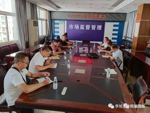 △圖為:興義市打傳辦召開聯(lián)席會,安排部署打擊傳銷聯(lián)合行動