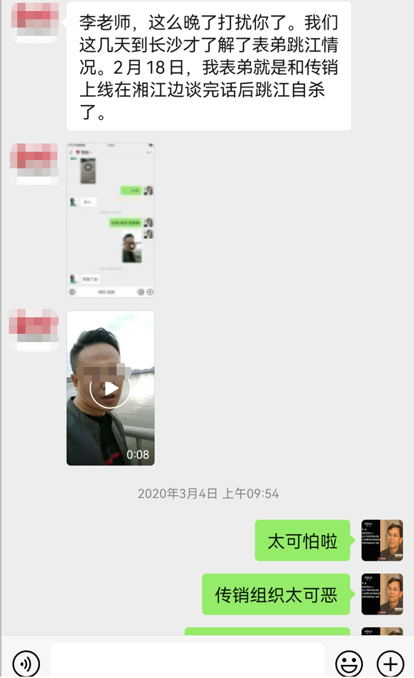 剛才看到的就是一位傳銷受害者生前的最后影像,他發(fā)完這段視頻后選擇了跳江自殺,連生命都可放棄,可見傳銷對他的傷害有多深。