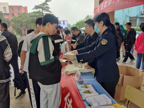 另一邊,向山市場(chǎng)監(jiān)管所聯(lián)合向山鎮(zhèn)綜治中心在馬鞍山工業(yè)學(xué)校開展了“禁傳銷,反欺詐,共建和諧社會(huì)”為主題的防范傳銷進(jìn)校園宣傳活動(dòng)。