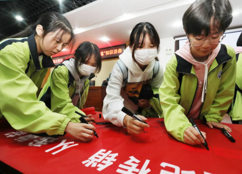 活動(dòng)現(xiàn)場(chǎng),雨山公安分局陳曼干警結(jié)合自身反詐辦案經(jīng)驗(yàn),給廣大學(xué)生上了一堂別開生面的“禁止傳銷,遠(yuǎn)離校園貸,防范電信詐騙”主題講座。隨后進(jìn)行了“拒絕傳銷,從我做起”簽名儀式,同學(xué)們依次在簽名橫幅上簽下名字,承諾抵制傳銷行為。