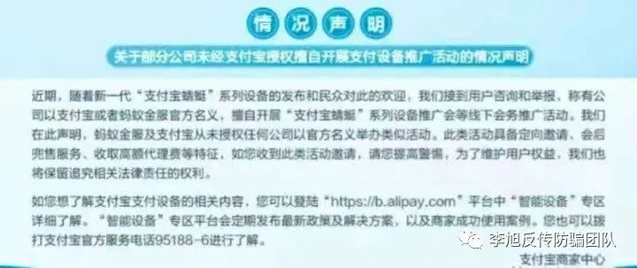 再次提醒各位網(wǎng)友,早在去年,支付寶官方就對刷臉支付加盟代理作出聲明,表示螞蟻金服和支付寶從未授權(quán)任何公司推廣加盟刷臉支付的招商會,也并不招收代理商。微信同樣也發(fā)出信息向社會告知,從未有過刷臉支付的加盟和代理政策。