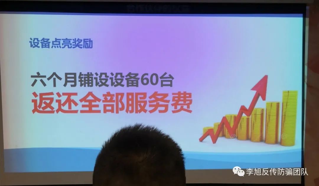 “6個月鋪滿60臺設(shè)備,不僅可以返還所交代理服務(wù)費,還能從商家后臺流水提萬分之16的高額分潤”