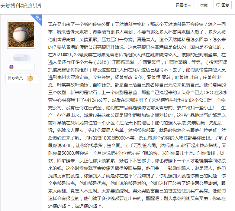 有網(wǎng)友爆料,天然博科公司的主要負(fù)責(zé)人是原亮碧思傳銷組織中的頭目之一,他們公司中銷售的產(chǎn)品,有部分為亮碧思傳銷產(chǎn)品 [此文來(lái)源:奧一報(bào)料、圖片為受害者提供,版權(quán)說(shuō)明:以上文字及圖片來(lái)源于網(wǎng)絡(luò),僅供學(xué)習(xí)和交流使用,不具有任何商業(yè)用途,其目的在于傳遞更多的信息,并不代表本平臺(tái)贊同其觀點(diǎn)。版權(quán)歸原作者所有,如涉版權(quán)或來(lái)源標(biāo)注有誤,請(qǐng)及時(shí)和我們?nèi)〉寐?lián)系,我們將迅速處理,謝謝!