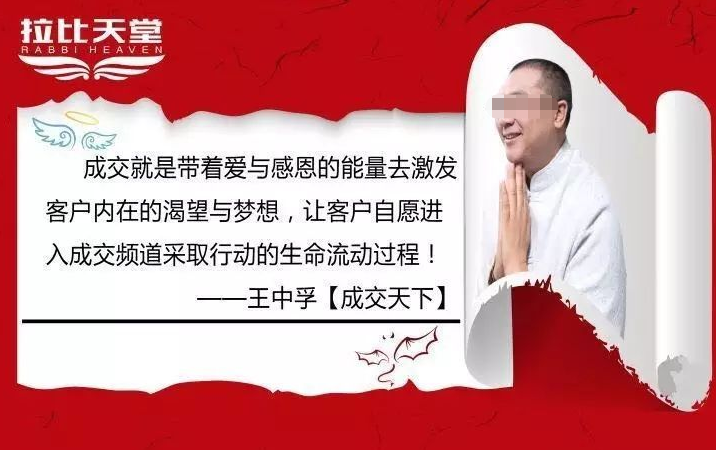報(bào)名之前,郭玉蓉就從女老板的朋友圈里,看到過(guò)一條名叫《引爆億萬(wàn)財(cái)富能量》的信息:“拉比天堂今天的課堂上,發(fā)生了一件巨大的奇跡!一位學(xué)員上了昨天一天課程,今天沒(méi)有來(lái)。正當(dāng)大家聯(lián)系他的時(shí)候,他發(fā)微信給教練,說(shuō)自己居然昨天上完課后就落地了一個(gè)十億的工程!連夜趕到北京去簽單了!他一再地感謝拉比天堂為他加持的能量,他不斷地感謝拉比天堂,感謝王中孚導(dǎo)師!”