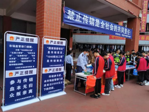 近年來(lái),傳銷(xiāo)組織瞅準(zhǔn)青年學(xué)生涉世未深,渴求財(cái)富、求職心切、急于成功的心理弱點(diǎn),以介紹工作、高薪招聘等形式誘騙青年學(xué)生參與傳銷(xiāo)活動(dòng)。今后,江南區(qū)將繼續(xù)加大打擊傳銷(xiāo)的宣傳教育力度,增加宣傳教育的廣度和深度,將打擊傳銷(xiāo)宣傳教育推向大中專院校,推向機(jī)關(guān)、企事業(yè)單位、社會(huì)團(tuán)體和村(社區(qū)),努力在轄區(qū)形成全民抵制傳銷(xiāo)、舉報(bào)傳銷(xiāo)、打擊傳銷(xiāo)的良好氛圍。