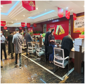 在一家名為“懶熊火鍋”的店內(nèi),記者隨推薦人來到這里考察,只見這里人聲鼎沸,熱鬧非凡,會議室、走廊內(nèi)全是人,財(cái)務(wù)室內(nèi)等待刷卡的人也排起了長龍。
