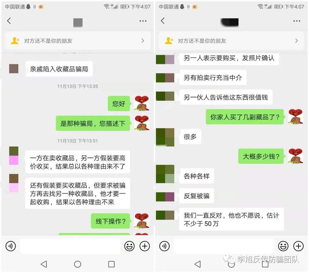近日,有網(wǎng)友跟李旭反傳銷團隊反饋,其家人就陷入了這種收藏品騙局。